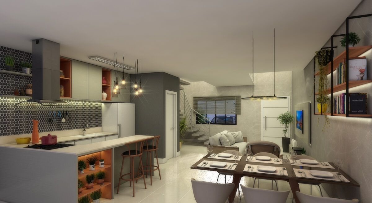 Triplex com 03 dormitórios, sendo uma suíte, sala, cozinha, (03 BWC) 01lavabo e 02 garagens.