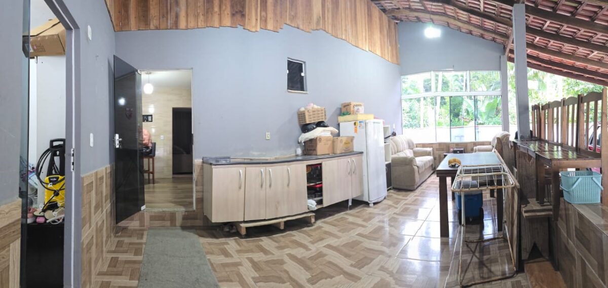 Sala de estar, 02 BWC’s, cozinha planejada (fica à venda), com ambiente espaçoso de escritório, lavação, área de festa com Churrasqueira e 03 vagas de garagem.(trifásico)